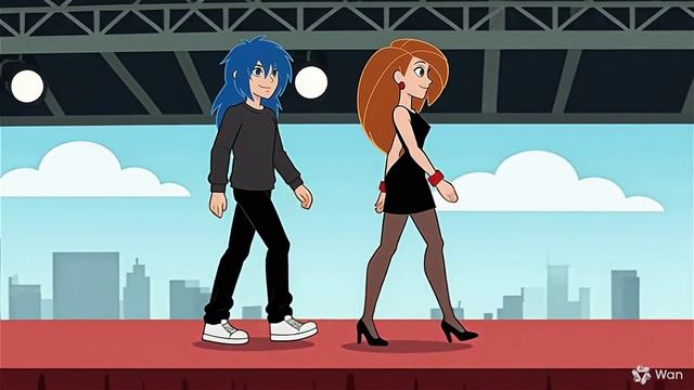 Kim and her boyfriend walk down the runway