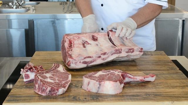 Разделка отруба Рибай на кости из мраморной говядины Black Angus