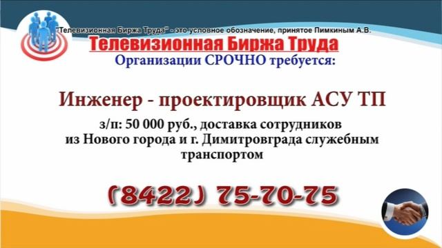Вакансии и телефоны прямых работодателей в специализированной программе по трудоустройству "Телевизионная Биржа Труда" - г.Ульяновск