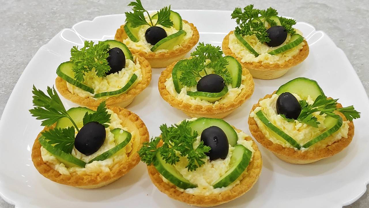 Тарталетки с огурцом и сыром. Простая и быстрая закуска на все случаи жизни.