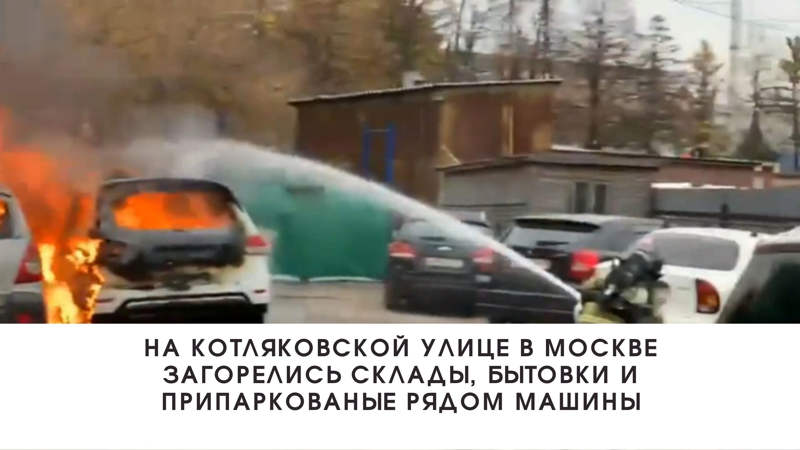 На Котляковской улице в Москве загорелись склады, бытовки и припаркованые рядом машины///