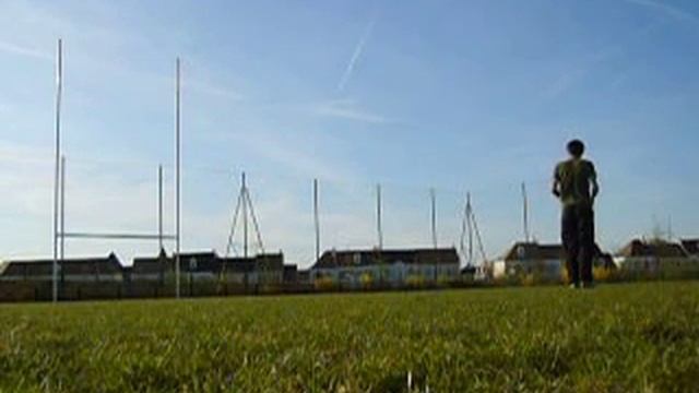 moi tapant un drop sur le terrain de ma ville me kicking a drop goal on my city's field