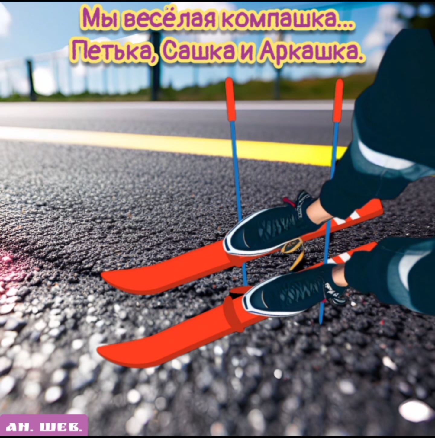 Стою на асфальте я В лыжи обутый. То ли лыжи не едут, То ли я - звезданутый. Пристроился возле Приятель в коньках. Их вместо ботинок, Он одел впопыхах. У третьего санки Не катят на солнце. Он смазку забыл, Опять на оконце. Нам руки не греют Надетые ласты... Народ весь фигеет, От троицы классной. Мы парни задорные, Все пофигисты... С нами, не скучно, Хоть Мы не артисты. Юмор-означает способность видеть и создавать смешные и шутливые ситуации, а также способность приносить радость и смех другим людям. Юмор может быть разнообразным - от игр слов и иронии до насмешек и комических событий. Юмор помогает нам расслабиться, снять стресс и насладиться жизнью в более позитивном ключе. Он также способен создать близость и связь между людьми, поднять настроение и внести легкость в нашу повседневность. Ржака. #юмор #смех #смешно #приколы #позитив #ржач #утро #позитивчик #лучшийюмор #смехдослёз #сарказм #угар #ржака #пародия #приколюха #умора #ржунемогу #рекомендации #топ