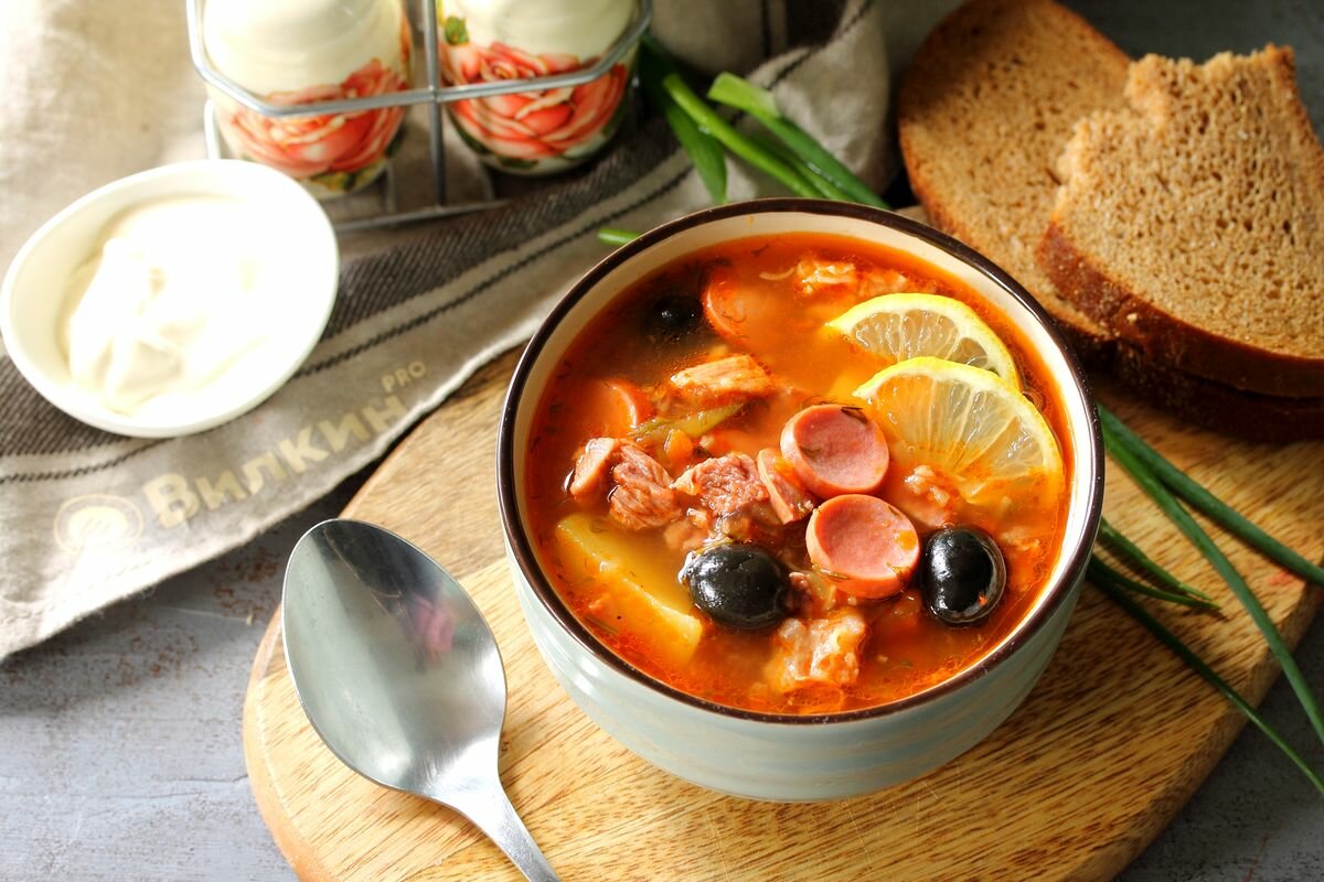 Когда в холодильнике остается кусочки разных колбас или несколько сосисок, то самый простой способ все это использовать - это приготовить солянку. А заодно и семью побаловать.