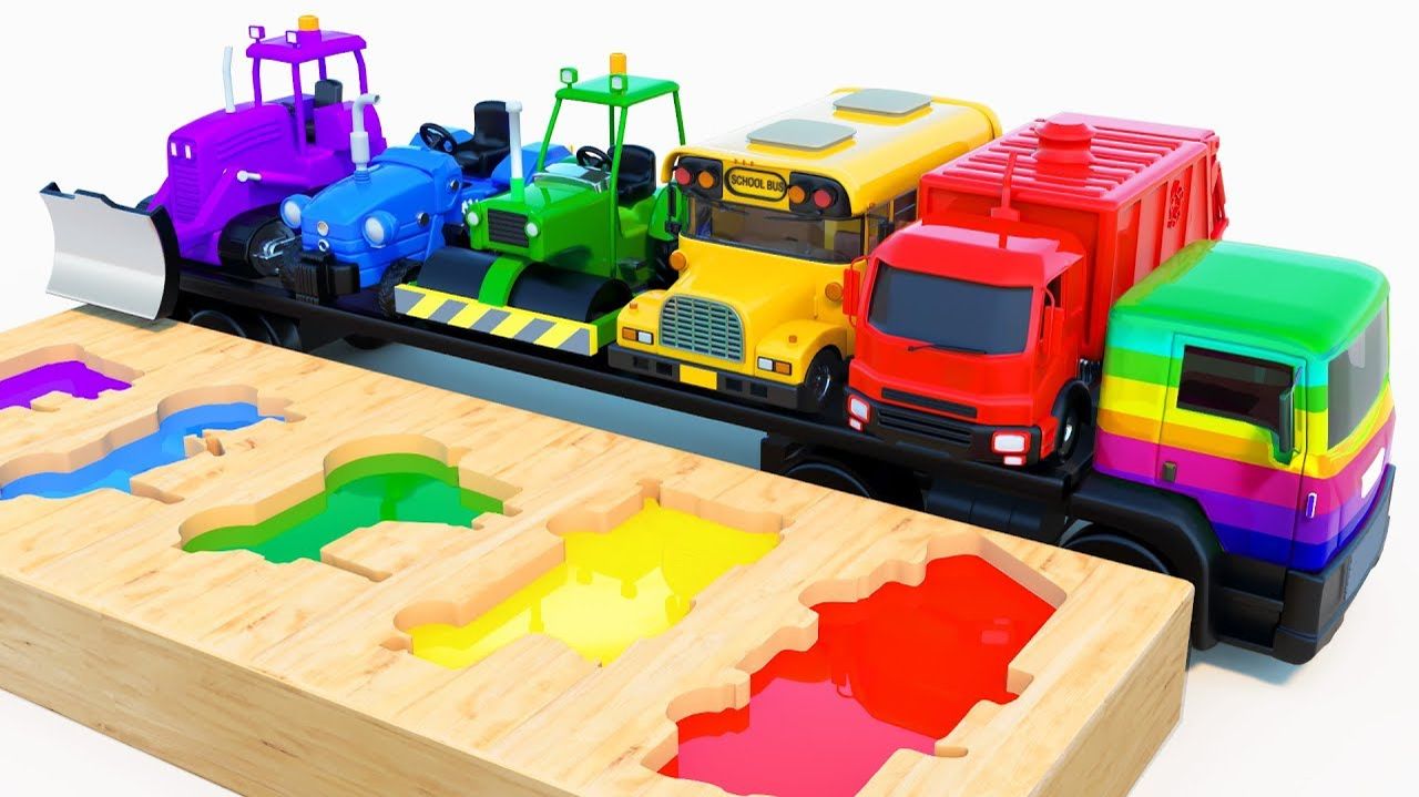 Учим транспорт с игрушечными машинками! Учим цвета школьный автобус, мусоровоз, бульдозер и трактор