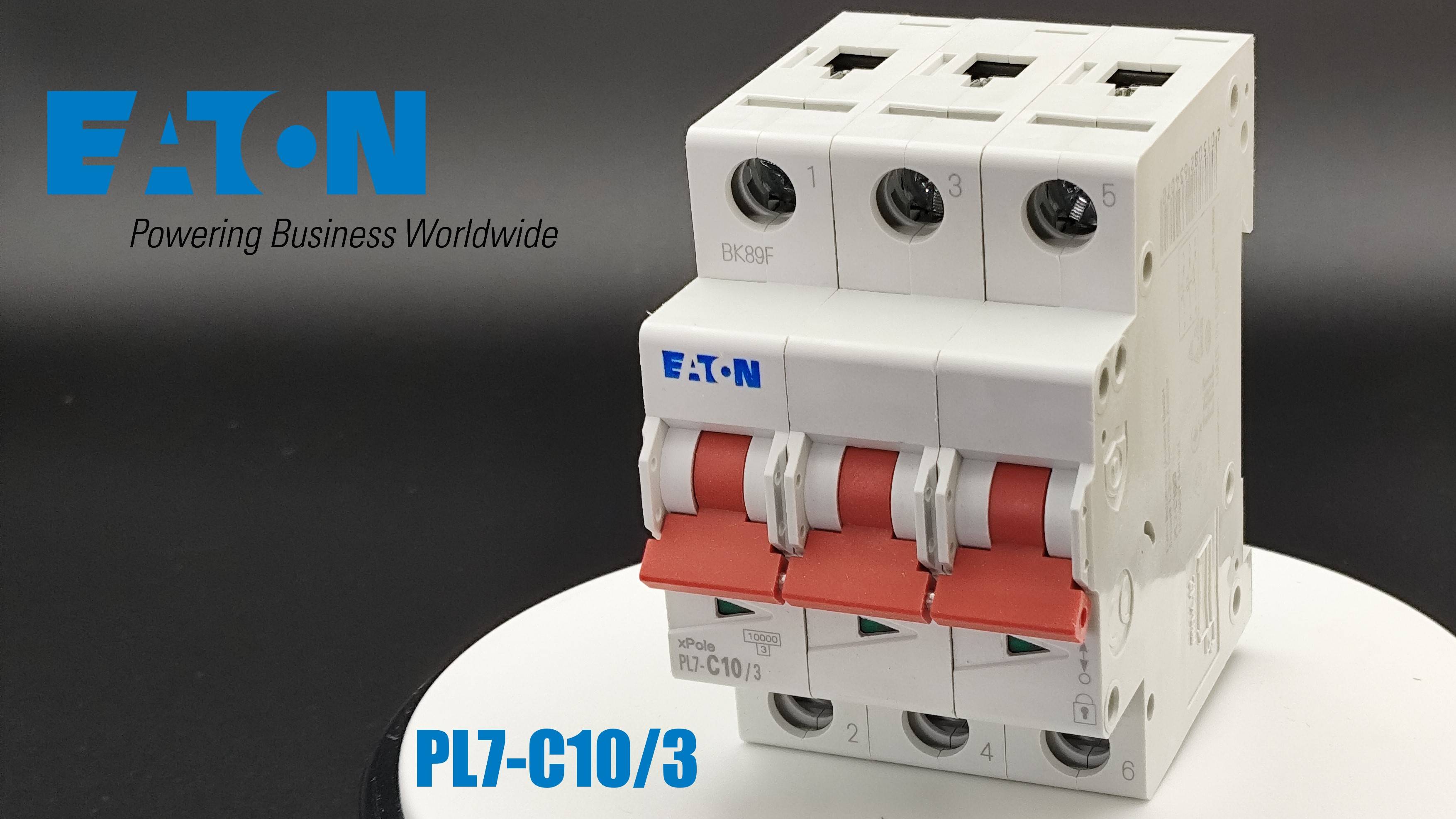 Автоматический выключатель серии PL7, производства EATON. Отключающая способность 10 кА. Двойные зажимы для проводника и систему шин. Номинальный ток 10А, 3 полюса. Более подробная информация представлена в нашем интернет-магазине по ссылке: