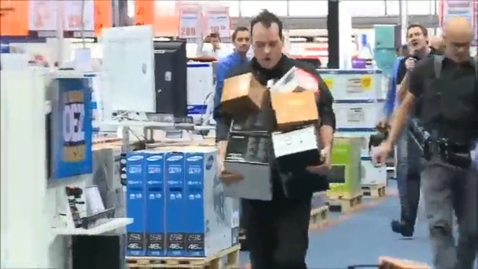 Супер-акция в амстердамском супермаркете - за 156 секунд можно было вынести товар в неограниченном количестве.