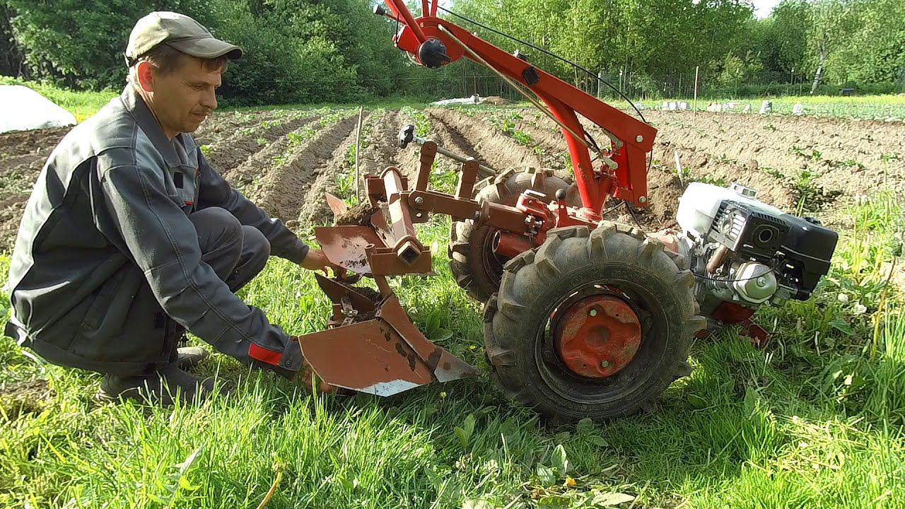 Окучивание картофеля мотоблоком. Решил не покупать дисковые окучники, а разобраться и понять работу двухрядных окучеиков. Мотоблок мтз Беларус 09Н.