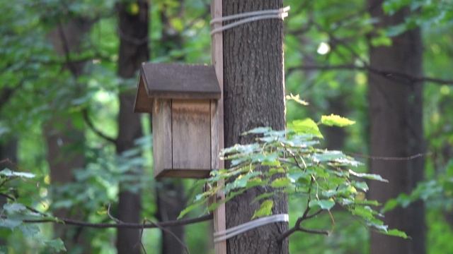 Дятел кормит орехами своего птенца, а белки едят сами