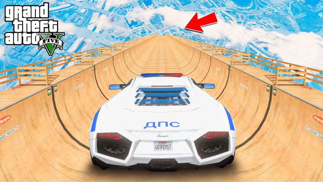 СПУСК БЕЗ ТОРМОЗОВ по МЕГА ТРАМПЛИНУ на ДПС ЛАМБОРГИНИ в ГТА 5 МОДЫ ЭКСПЕРИМЕНТЫ в GTA 5 ВИДЕО MODS