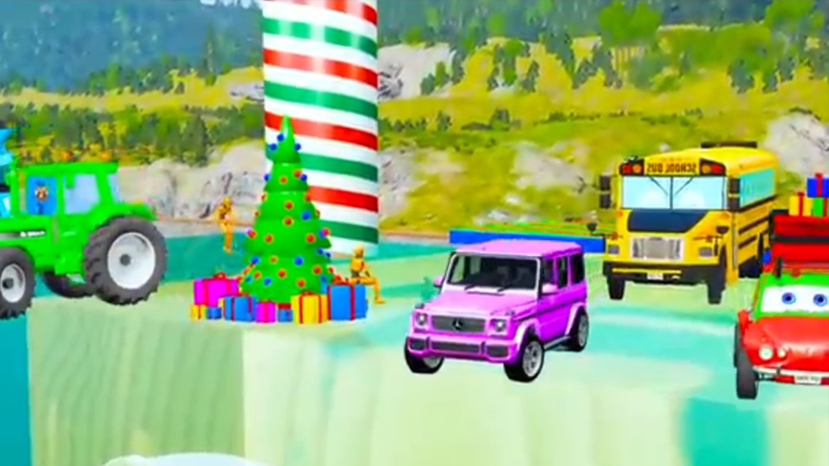 Грузовые машинки, тачки, трактор проходят препятствия! весёлые машинки