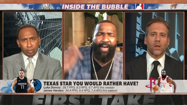 Stephen A. Smith, Max Kellerman and Kendrick Perkins debate which Texas star they would rather have between the Dallas Mavericks SG Luka Doncic and Houston Rockets SG James Harden. #FirstTake #NBA ✔️Subscribe to ESPN+ https://plus.espn.com/ ✔️ Get the ESPN App: http://www.espn.com/espn/apps/espn ✔️Subscribe to ESPN on YouTube: http://es.pn/SUBSCRIBEtoYOUTUBE ✔️ Subscribe to NBA on ESPN on YouTube: http://bit.ly/SUBSCRIBEtoNBAonESPN ✔️ Watch ESPN on YouTube TV: http://es.pn/YouTubeTV ESPN on Social Media: ► Follow on Twitter: http://www.twitter.com/espn ► Like on Facebook: http://www.facebook.com/espn ► Follow on Instagram: http://www.instagram.com/espn Visit ESPN on YouTube to get up-to-the-minute sports news coverage, scores, highlights and commentary for NFL, NHL, MLB, NBA, College Football, NCAA Basketball, soccer and more. More on ESPN.com: https://www.espn.com