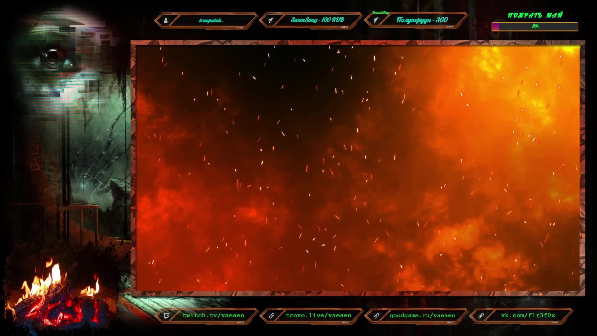 Если хотите поддержать меня как стримера - нажмите по данной ссылке https://www.donationalerts.com/r/f1r3f0x Donate for USD, EU all world - https://new.donatepay.ru/@vaeaen Во время стрима ваше сообщение появится на экране, и будет сопровождаться голосовым диктором. Поддержка на прямую: Сбер: 2202 2010 0629 1039 Тинькофф: 2200 7008 4677 0625 Основные каналы: Twitch: https://www.twitch.tv/vaeaen GoodGame: https://goodgame.ru/channel/Vaeaen/ Trovo: https://trovo.live/Vaeaen Дополнительные: Boosty: https://boosty.to/vaeaen VKplay: https://vkplay.live/vaeaen Wasd: https://nuum.ru/channel/vaeaen YouTube: https://www.youtube.com/channel/UCsl3CyRcImUYtWiCgEdvmjQ