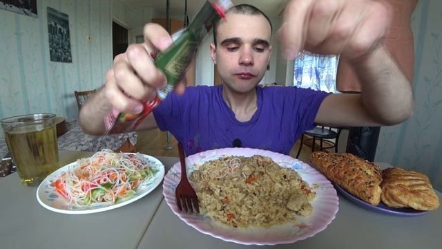 МУКБАНГ АСМР ПЛОВ С МЯСОМ СВИНИНА ФУНЧОЗА / EATING ASMR Mukbang #628