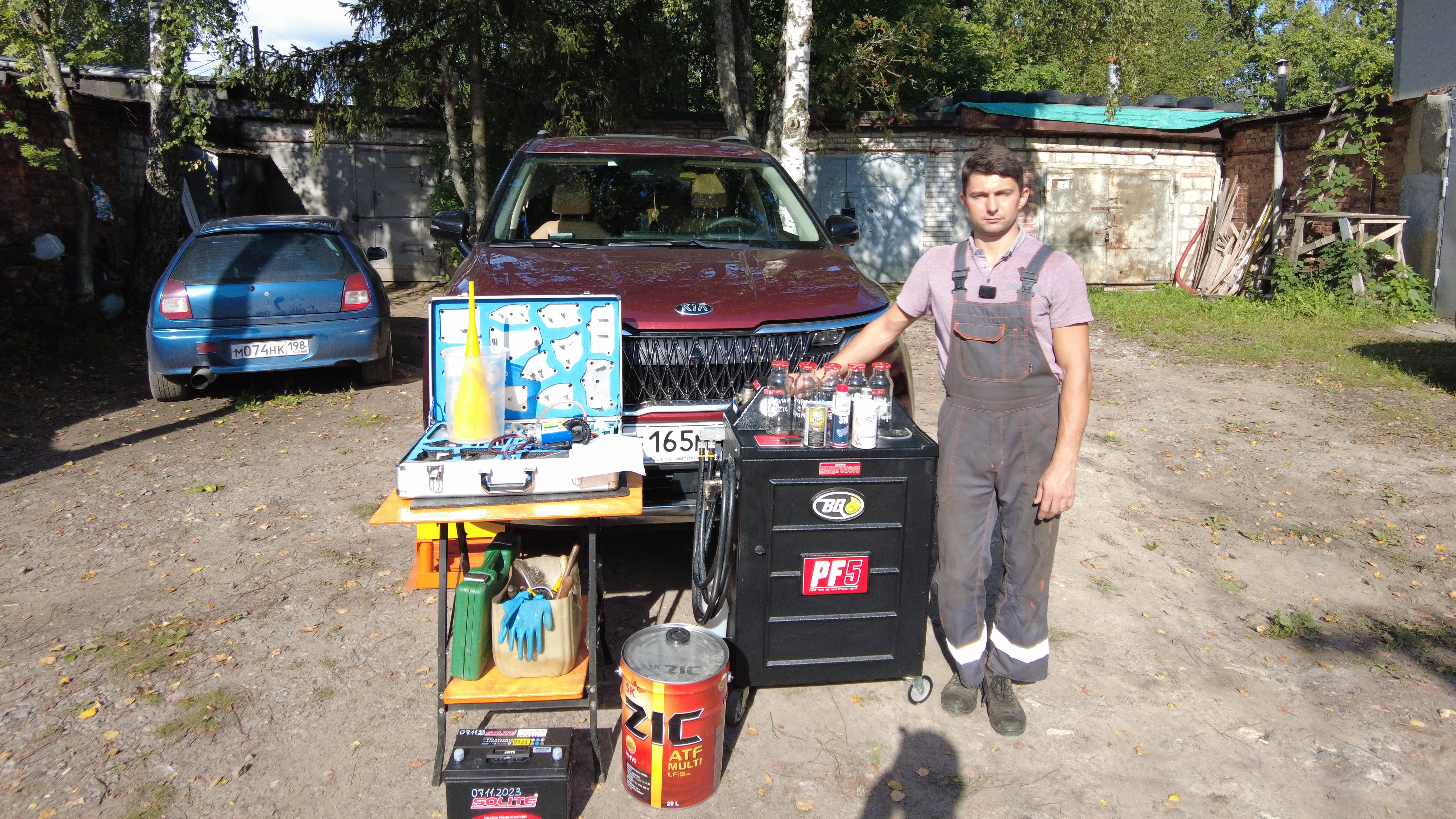 Kia Carnival 2.2 CRDi полная аппаратная замена масла ATF в АКПП A8LF2 установкой BG PF5