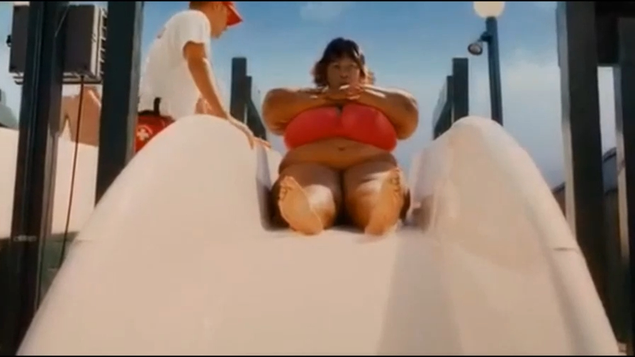 Большая мамочка решила спуститься с огромной водной горки