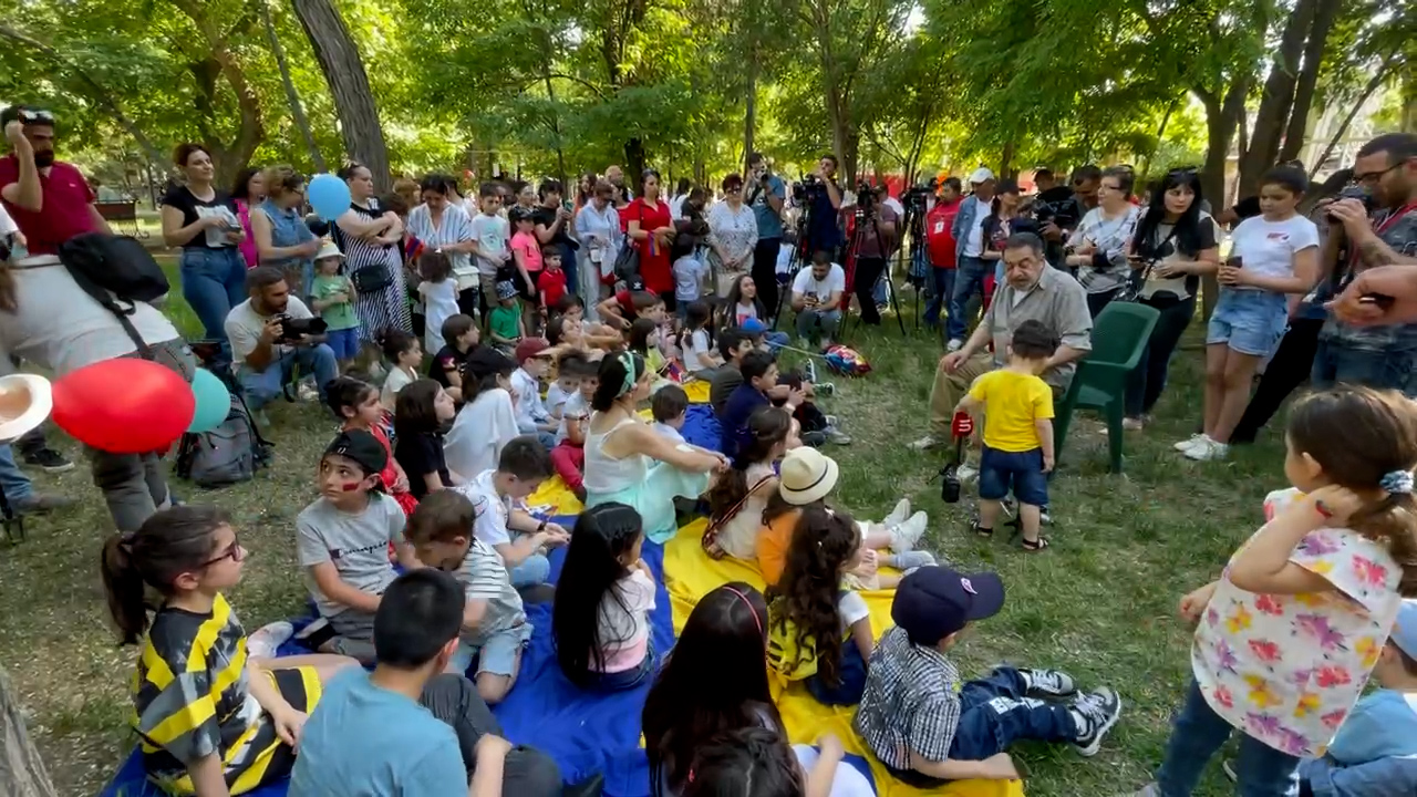 Հրանտ Թոխատյանը հեքիաթ է պատմում Ֆրանսիայի հրապարակում հավաքված երեխաների համար