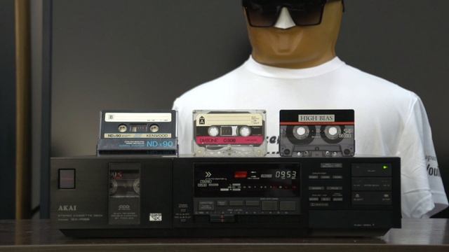 AKAI GX-R88 ¥118,000(1983年発売) Кассетная дека со сквозным каналом, три аудио головки, реверс, поиск по паузам, калибровка ленты и др. Производитель Япония. 型式 ステレオカセットデッキ ワウ・フラッター 0.028%WRMS(JIS) ±0.055%W.Peak(EIAJ) 周波数特性 20Hz~18kHz ±3dB(ノーマルテープ) 20Hz~19kHz ±3dB(CrO2テープ) 20Hz~21kHz ±3dB(メタルテープ) SN比(メタルテープ) 56dB(EIAJ) Dolby B on:1kHzで5dB、5kHz以上で10dB改善 Dolby C on:500Hzで15dB、1kHz~10kHzで20dB改善 歪率(1kHz、0VU) 0.5%(メタルテープ) ヘッド コンビネーションヘッド スーパーGX録音ヘッド スーパーGX再生ヘッド 消去ヘッドx2 モーター キャプスタン用:FGサーボDDモーターx2 リール用:DCモーター メカ駆動用:DCモーター 早巻き時間 約90秒(C-60テープ使用時) 入力レベル Line:70mV/47kΩ 出力レベル Line:410mV/2kΩ以下 Headphone:1.3mW/8Ω 電源電圧 AC100V、50Hz/60Hz 消費電力 34W 最大外形寸法 幅440x高さ105x奥行372mm 重量 約7.6kg 付属 コネクションコードx2 別売 ワイヤレスリモコン RC-92(¥18,000) ワイヤードリモコン RC-32(¥6,000)