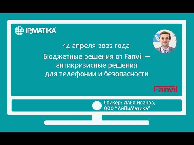 14 апреля 2022 года продакт-менеджер компании АйПиМатика Илья Иванов провел вебинар "Бюджетные решения от Fanvil — антикризисные решения для телефонии и безопасности". Спикер рассказал участникам о бюджетных продуктах в каждой из линеек оборудования Fanvil, акциях и возможностях партнеров в кризисный период.