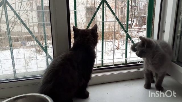 Котята на окошке заинтересовались свежим воздухом.