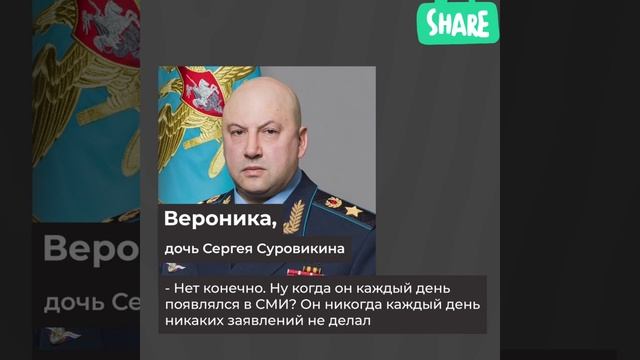 Дочь генерала Суровикина отрицает его арест. Она заявила, что «с ним ничего не произошло, он на рабочем месте». По её словам, отец «никогда каждый день в СМИ не появлялся и заявлений не делал». При этом жена генерала отказалась комментировать слухи о его аресте.