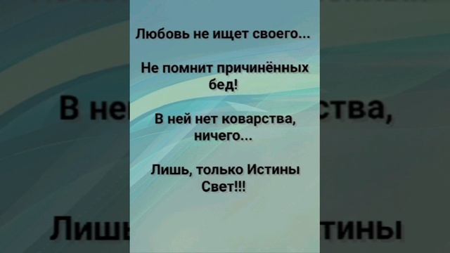 ХРИСТИАНСКИЕ ПЕСНИ ДЛЯ ХВАЛЫ ПОКЛОНЕНИЯ ПРОСЛАВЛЕНИЯ ЕВАНГЕЛИЗАЦИИ ДУХОВНОГО РОСТА ПРОБУЖДЕНИЯ ВОЗРОЖДЕНИЯ #господь#музыка#христианская_музыка#музика#христианскиепесни#бог#христианскиестихи#любовь#христианство#стихи#песня#песни#иисус#иисусхристос#иисусмойбог#иисус_христос#иисусбог#иисусгосподь#хвалы_и_поклонения#хваление#хвала#прославление#духсвятой#духовныйрост#духовноепробуждение#духовность#евангелие#евангелизация#евангельскаявесть#духовный_рост#пробуждение#рождество#рождествохристово#божий#божийнарод#божьеслово #ХристианскаяПесня #ХристианскоеПоклонение #ХристианскаяНоваяПесня #ПастырьМоейДушы #ХристианскаяМузыка #ПесняСлавы #Иисус #ЛюбовьБожья #ХристианскиеТексты #СлаваГосподу #ВераИПоклонение #ВечнаяЛюбовь #RussianChristianSong #RussianChristianWorship #RussianChristianMusic #RussianWorship #NewRussianChristianMusic #RussianChristianMusic #RussianSongOfPraise #Jesus #GodsLove #ChristianLyrics #GloryToGod #RussianFaithAndWorship #EternalLove #Пасха #Воскресение #ХристосВоскрес #пробуждение #возрождение https://stihi.ru/avtor... "ЛЮБОВЬ НЕ ПРЕВОЗНОСИТСЯ!" СЛОВА, МУЗЫКА, ОБРАБОТКА: ЖАННА ВОЛКОВА-ВАРЛАМОВА https://stihi.ru/2025/... Стихи Жанна Юрьевна Волкова-Варламова Вступление: Любовь не превозносится... 1 Куплет Она умеет долго ждать... И, милосердием сиять. Не будет завистью пылать... И, не захочет унижать. Припев: Любовь не ищет своего... Не помнит причинённых бед! В ней нет коварства, ничего... Лишь, только Истины Свет!!! 2 Куплет Она не гордится собой... Не бесчинствует никогда. Найдёт для каждого дом и покой... Будет, как путеводная звезда! Припев: Любовь не ищет своего... Не помнит причинённых бед! В ней нет коварства, ничего... Лишь, только Истины Свет!!! 3 Куплет Она не станет раздражаться... И, злых не держит мыслей впрок! Не будет в ложном упиваться... Даёт надежды нам росток! Она не станет раздражаться... Не бесчинствует никогда. Найдёт для каждого дом и покой... Будет, как путеводная звезда! Припев: Любовь не ищет своего... Не помнит причинённых бед! В ней нет коварства, ничего... Лишь, только Истины Свет!!! 4 Куплет Не радуется горькой лжи... А, правде рада всей душой! Ты только веру сбереги... Иди за ней... Иди за Христом! Припев: Любовь не ищет своего... Не помнит причинённых бед! В ней нет коварства, ничего... Лишь, только Истины Свет!!! Бридж Всё переносит, веря вновь... Всё покрывает день за днём! И, не закончится любовь... Мы только ей одной живём!!! Припев: Любовь не ищет своего... Не помнит причинённых бед! В ней нет коварства, ничего... Лишь, только Истины Свет!!! Заключение: Пройдут пророчества и знанья... Умолкнут сотни языков. Останется одно сиянье... Бессмертная моя любовь!!! Лишь, только Истины Свет!!! Любовь Бридж Всё переносит, веря вновь... Не бесчинствует никогда. Найдёт для каждого дом и покой... Будет, как путеводная звезда! Припев: Любовь не ищет своего... Не помнит причинённых бед! В ней нет коварства, ничего... Лишь, только Истины Свет!!! Заключение: Пройдут пророчества и знанья... Умолкнут сотни языков. Останется одно сиянье... Бессмертная моя любовь!!! 18.07.2025 Жанна Волкова-Варламова __________________________________________