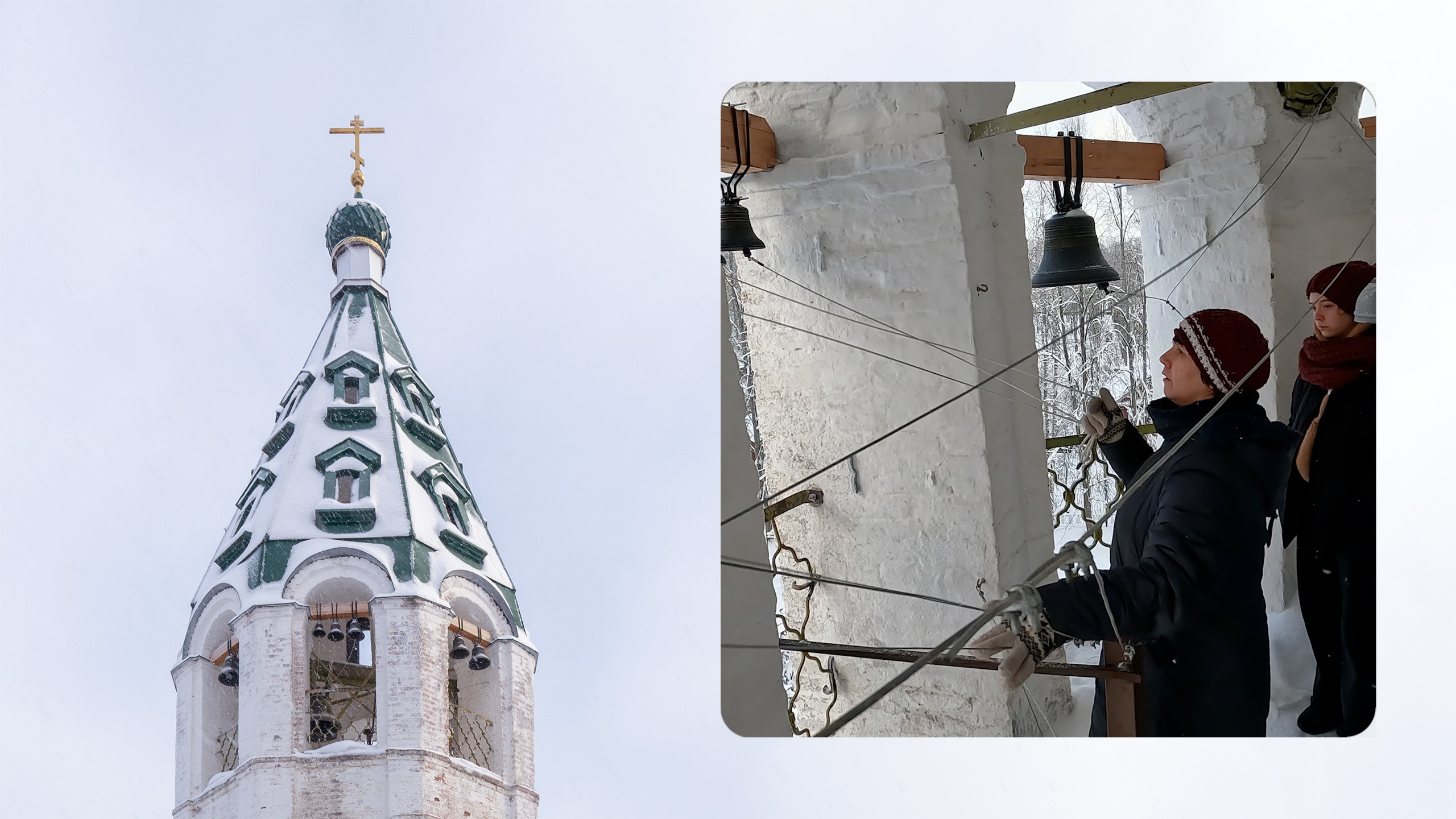 Звонарь Татьяна Прусакова, Палех, колокольня Ильинской церкви, 9 января 2024г.