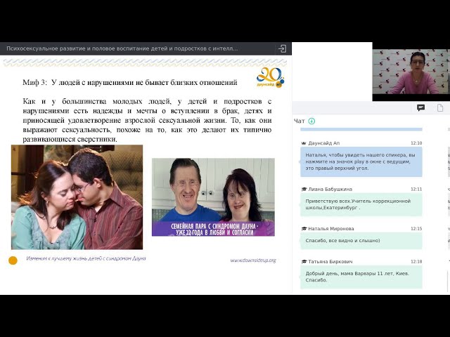 На этом вебинаре Вера Степанова, психолог фонда «Даунсайд Ап», рассказала о психосексуальной теории развития человека, мифах о сексуальности людей с инвалидностью, а также принципах и подходах к половому воспитанию детей и подростков с интеллектуальными особенностями. Вебинар проводился с использованием гранта Президента Российской Федерации, предоставленного Фондом президентских грантов. #вебинары_ДСА #специалистам #психологическая_поддержка #Даунсайдап #синдромдауна Благотворительный фонд «Даунсайд Ап» оказывает бесплатную психолого-педагогическую помощь семьям с детьми с синдромом Дауна. Больше информации — на сайте https://downsideup.org