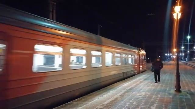 Электропоезд ЭД4М-0210 с пригородным поездом №6041 Челябинск-Главный — Кисегач отправляется с 3-го пути Ст. Чебаркуль, Челябинская обл., ЮУЖД Дата: 29.12.2021