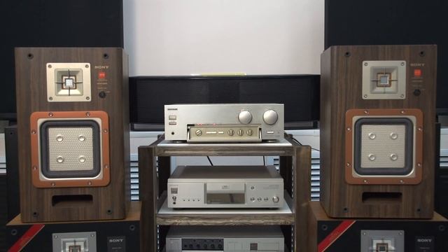 На видео KENWOOD KA-7090R ¥69,800(1997年頃) подключен к акустическим системам SONY APM-22ES ¥39,000(1台、1984年頃).