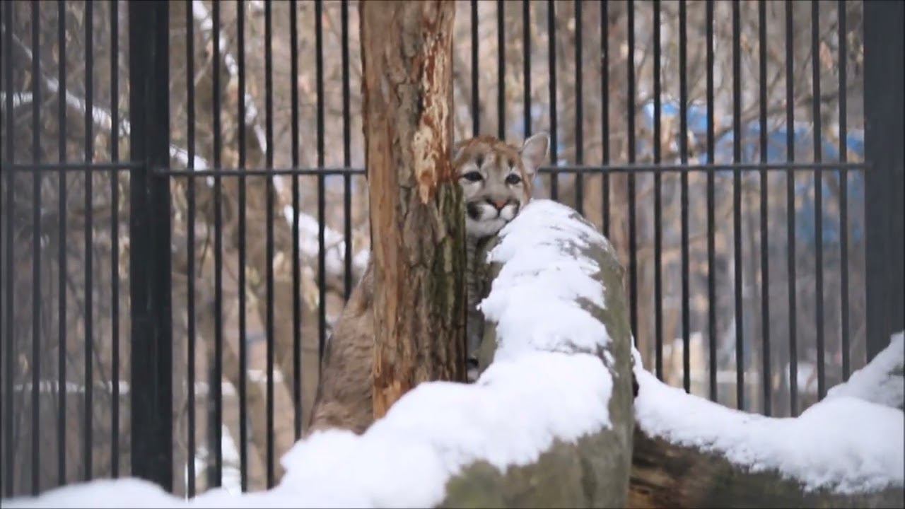 В Новосибирском зверинце пумы содержатся с 1967 года и регулярно обзаводятся потомством. Пума – самый крупный представитель малых кошек, хотя по размерам конкурирует с леопардом. Средний вес взрослого самца 53-72 кг. Известен случай, когда самец весил 120 кг. Пумы обладают целым диапазоном вокализаций: они могут шипеть, кричать, а вот рычать нет. Самки издают особые звуки при общении с детенышами. Они напоминают птичье чириканье. 2 года назад самец пумы Гудзон, который переехал в Новосибирский зоопарк в 2007 году из Перми, умер. Самка Милана умерла в конце 2022 года. Гудзон 2004 г.р. и самка Милана 2008 г.р. Первое их потомство появилось в 2012 году. Самка Милана родила в конце ноября 2017 года доченьку Софию. Сейчас она живёт в Карельском зоопарке. Новым обитателем Новосибирского зоопарка станет двухмесячный котенок канадской пумы. Пока кошечка живет с родителями в Барнаульском зоопарке «Лесная сказка», но на днях переедет в Новосибирск. Нашему пумёнку было 11 месяцев когда он к нам приехал. Он приехал из Нижнего Новгорода. Он родился в сентябре 2022-го. Везли его в Новосибирск на автомобиле. В пути были трое суток. Он хорошо перенес дорогу и быстро адаптируется к новому месту. Он уже успел нас всех покорить своим спокойным нравом, любопытством, красотой. Этот самец появился на свет в зоопарке «Лимпопо» Нижнего Новгорода, был выкормлен матерью. В перспективе зоо планирует подобрать ему пару. Пумочка родилась в июне 2023 в Барнаульском зоопарке.