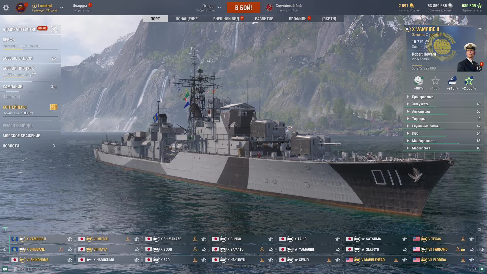 Мир кораблей - VAMPIRE II Эсминец содружества за ОИ + Верфь задачи)