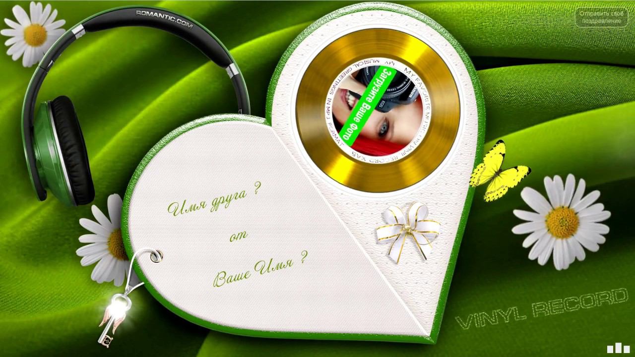 ЗАПОЛНИТЬ ОТКРЫТКУ СЕЙЧАС: https://1romantic.com/ Дорогие друзья! Вам остаётся только, написать нужный вам текст и загрузить свою фотографию. 1Romantic.com Является первым и единственным в мире сервисом интерактивных видео поздравлений. Мы используем собственную уникальную технологию, добавляя ежедневно самые новые и последние разработки программирования. У нас Вы можете найти поздравления на любой вкус, только высокого качества и разрешения. Согласитесь, всегда приятней, отправить поздравления от себя лично, чем пересылать чужие, с уже заготовленным стандартным и быстро мерцающим текстом, как рекламный баннер, пересылаемый друг-другу от тысячи к тысячам где нет Ваших Имён. Задумайтесь ! Это выглядит слишком наивно и как минимум глупо, особенно для людей которые умеют писать и читать (на мою розочку сверкалку или стикер и отвали). Теперь всё будет иначе ! Вы можете сами передать своё настроение, тем людям, которым Вы будете адресовать своё поздравление. Теперь Вы сами, творец, художник и поэт своих чувств, наполняя видео открытку своими словами, излучая только самое доброе, искреннее из своих тёплых сердец. Загрузить свою любимую фотографию или фотографию получателя, что безусловно, будет гораздо приятней и неожиданней для него) Безусловно, мы подумали и о музыкальном оформление. Наверняка, Вы будете подбирать нужные слова и фотографию под ту песню, которую Вы захотите загрузить сами, а не ту которую Вам навязывают. Ну и самое главное, Вы можете использовать функцию добавления своего голоса, программа сама наложит Ваш голос на начало загруженной песни. Поверьте это очень оригинально, особенно если Ваш друг не слышал Вас долгие годы. Такое поздравление можно сделать действительно за 30-60 сек. Но если Вы творческий человек, оно не отпустит Вас так быстро))) И Вы будете думать, сочинять, плакать, улыбаться, восхищаться, раскрыв в себе новые таланты... возможно это станет Вашим первым собственноручным творением . Удачи Вам ! С уважением, Ваши Романтики ! Краткий список предлагаемых нами поздравлений... Поздравления с днем рождения женщине. Поздравления с днем рождения мужчине. Поздравления с днем рождения другу. Поздравления с днем рождения подруге. Поздравления с днем рождения для детей. Поздравления с днем святого Валентина. Поздравления Папе. Поздравления с днем рождения Маме. Прикольные поздравления. Видео поздравления с днем рождения. Музыкальные поздравления с днем рождения. Слайд-шоу с днем рождения. и многое-многое другое.