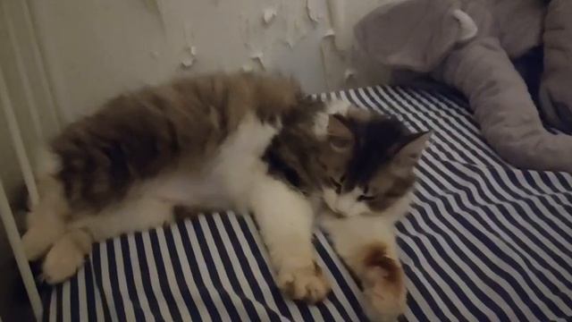 Глашенька уехавшая в Москву под опеку нашей крестной мамы и прошедшая лечение иммунодефицита и лейкоза, стала полноценным членом семьи! 😁Даже помогла новым котородителям подготовить стены к ремонту, ободрав обои)))