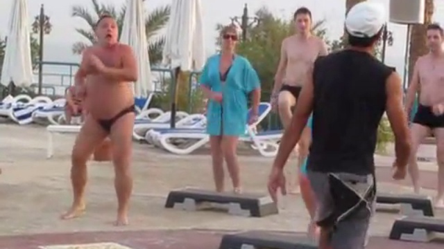 Смешной мужик танцует на отдыхе