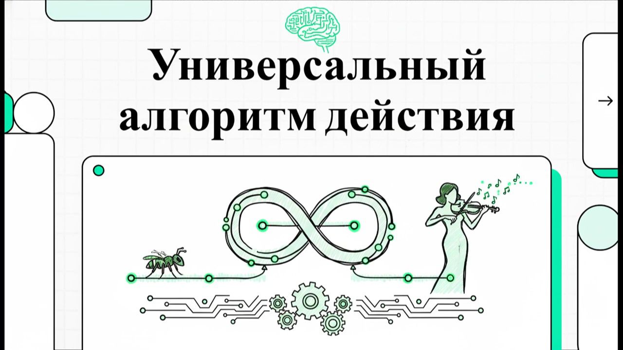 Универсальный принцип организации поведения, основанный на ветвящихся цепочках реакций, которые эволюционировали от жестких инстинктов до гибкого осознанного планирования. Любая сложность действий — от материнского инстинкта до творчества — управляется двумя инвариантными критериями: внешним пусковым стимулом и внутренним сигналом о завершении предыдущего этапа. Внедрение неокортекса не отменяет эту базовую архитектуру, а лишь надстраивает над ней систему абстрактных образов и осознанных тем, позволяя моделировать результаты действий в уме без их реального совершения. Текст подчеркивает, что подлинная адаптивность, как в живых существах, так и в искусственном интеллекте, возможна только при сохранении этой преемственности, где сознание выступает «редактором» автоматизмов, способным дополнять, корректировать и оптимизировать поведенческие программы ради достижения актуальных целей.