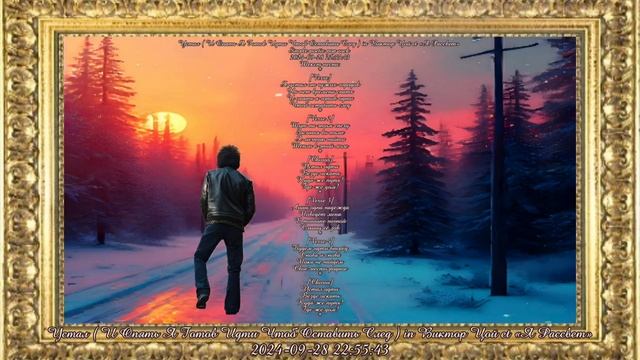 Устал ( И Опять Я Готов Идти Чтоб Оставить След ) in Виктор Цой et «Я Рассвет» simple poetic pop rock 2024-09-28 22:55:43 Текст песни: * [Verse] Я устал от чужих городов Но нет времени спать И опять я готов идти Чтоб оставить след * [Verse 2] Тут на этом снегу Засыпая во тьме Я мечтаю найти Тепло в этой мгле * [Chorus] Устал идти Везде искать Куда же путь? Где же дом? * [Verse 3] Лишь одна надежда Поведёт меня В тишине ночной Слышу её зов * [Verse 4] Будем идти вперёд Снова и снова Пока не найдём Свое место родное * [Chorus] Устал идти Везде искать Куда же путь? Где же дом? *