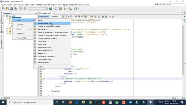 Nesta aula vamos criar um projeto Java Web com Netbeans 8.2 e definir um layout para o projeto, utilizando o framework JSF e Facelets.