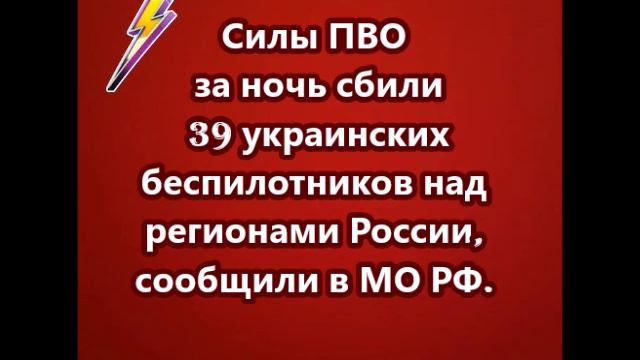 Силы ПВО за ночь сбили 39 украинских беспилотников над регионами России