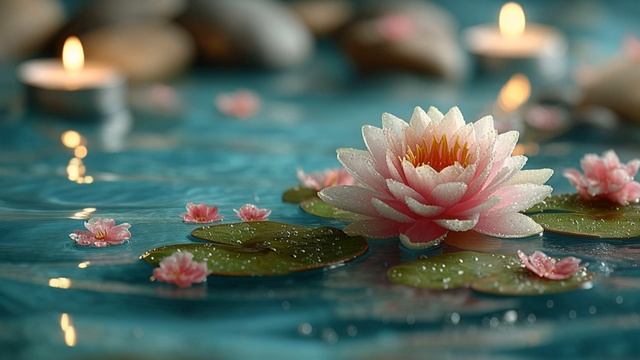 Релакс-клип для отдыха и концентрации: лотос на воде, тёплый свет свечей, мягкая медитативная атмосфера. дзен, медитация, релакс, лотос, розовый лотос, свечи, вода, спокойствие, антистресс, осознанность, йога, музыка для медитации, без слов, фон, zen, meditation, lotus, candles, relaxing, ambient
