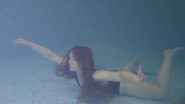 Купание девушки в воде бассейна.