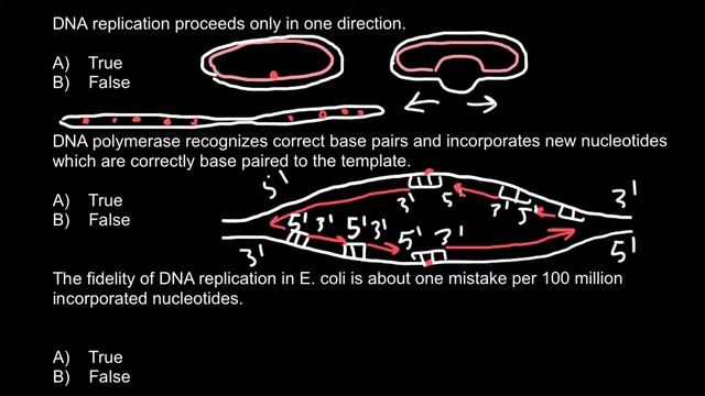 True-false questions about DNA replication