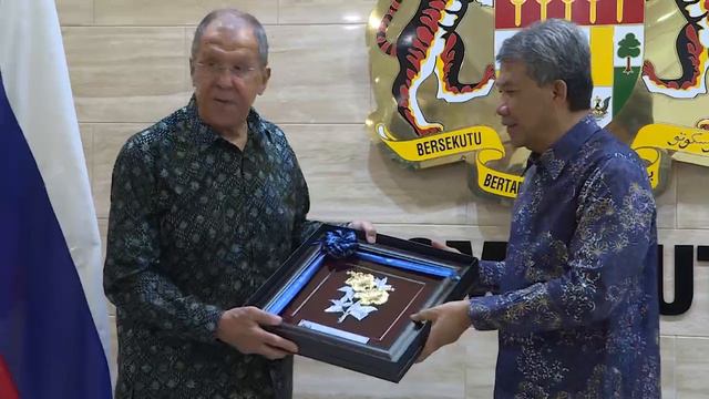 С.Лавров и М.Хасан обменялись подарками, Куала-Лумпур, 28 июля 2024 года
