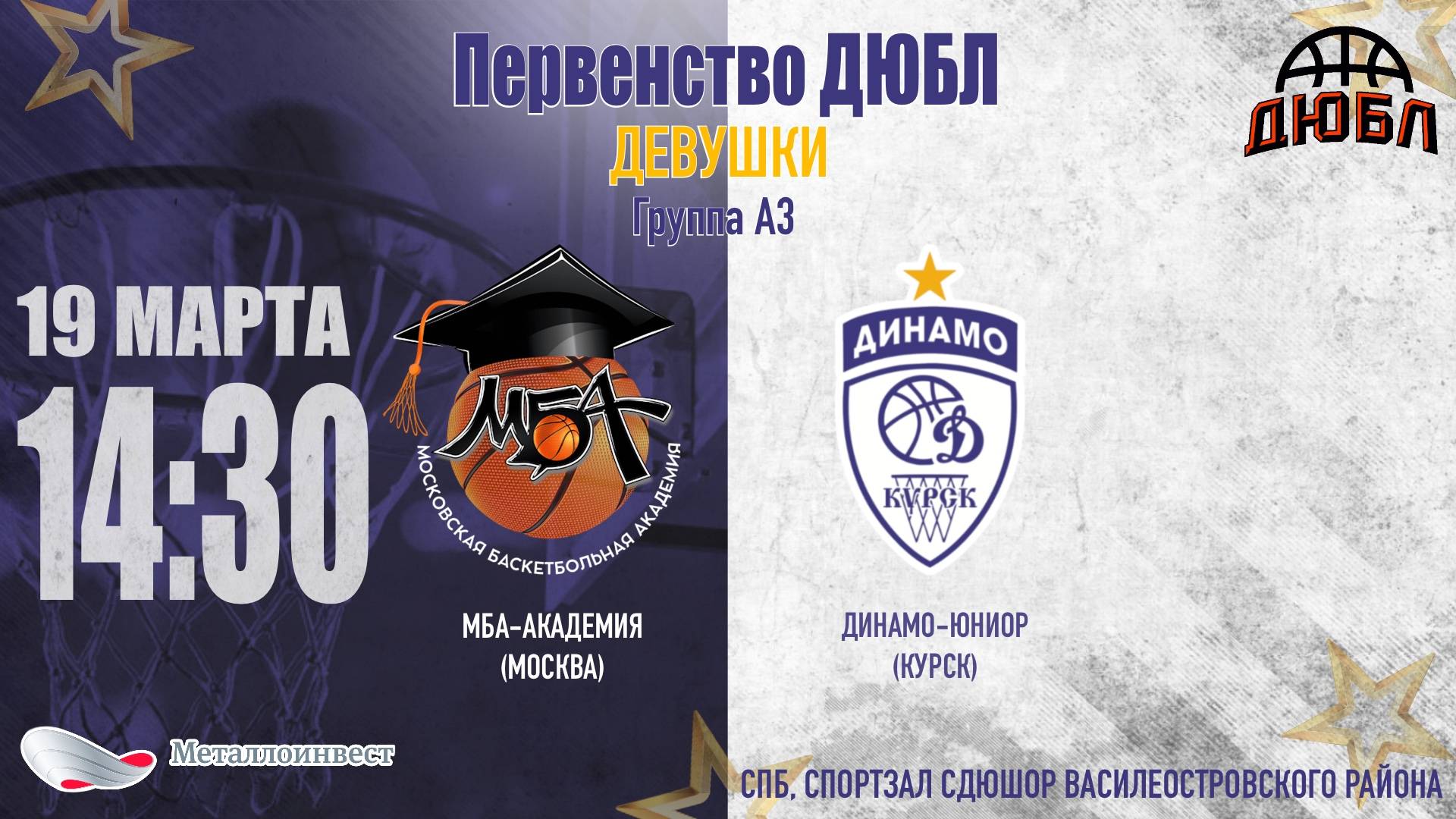 19.03.2024 14:30 МБА-Академия (Москва) - Динамо-Юниор (Курск)