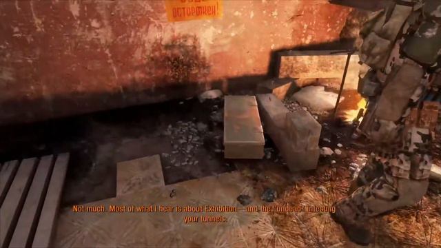 DESCRIPTION: Exhibition is a friendly level and takes place during Artyom's final moments in his home station. OVERVIEW: In this level, Artyom is readying for his caravan trip to Riga station but needs to collect his equipment and make his way through the station to the southern platform. After Riga, he will travel to Polis to inform a man named Miller about Hunter's mission against the Dark Ones. Before he leaves, he talks to several of the station's residents and his step-father, Alex. The level involves no fighting or hostilities whatsoever and provides some backstory to the plot of the game and the importance of Artyom's mission. https://store.playstation.com/#!/tid=CUSA00572_00