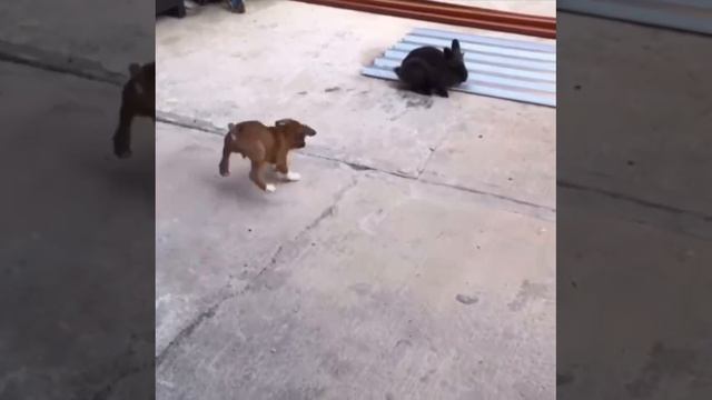 Щенок думает, что он зайчик? Милота?
