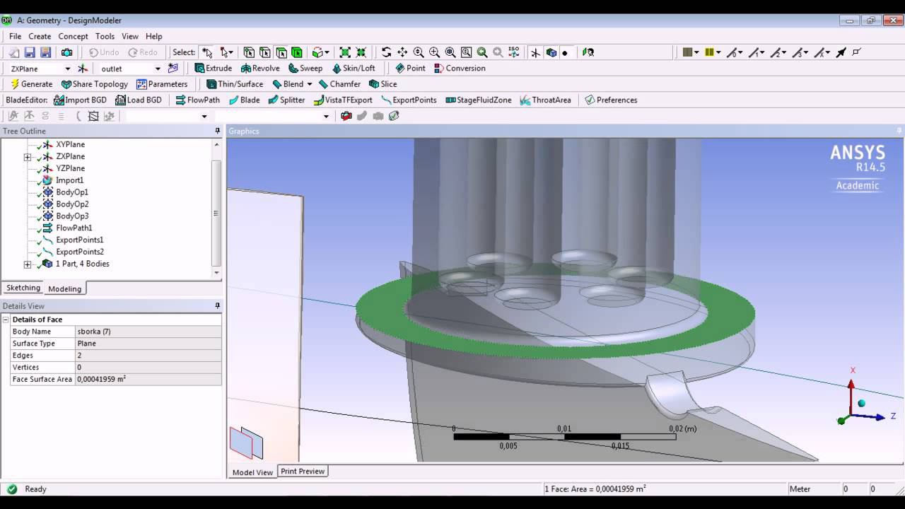 Пример построения структурированной гекса сетки для участка проточной части турбомашины