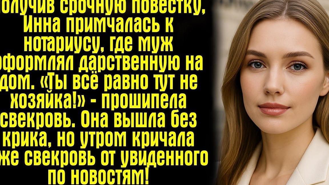 Получив срочную повестку, Инна примчалась к нотариусу, где муж оформлял дарственную на дом...