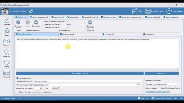 Quick Sender - Парсер групп Вконтакте. Вконтакте поиск. Поиск вк. Парсинг групп с открытой стеной ВК