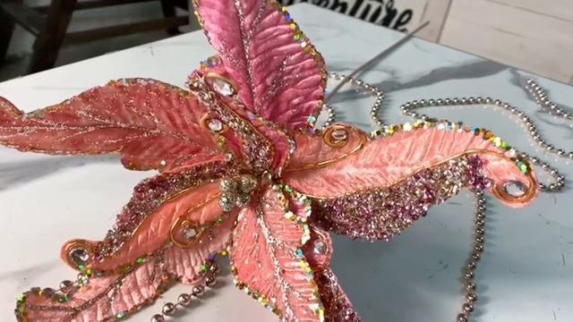 Искусственная пуансеттия на стебле ХАЙНАЛЬ, полиэстер, персиковая, 61 см, 86664